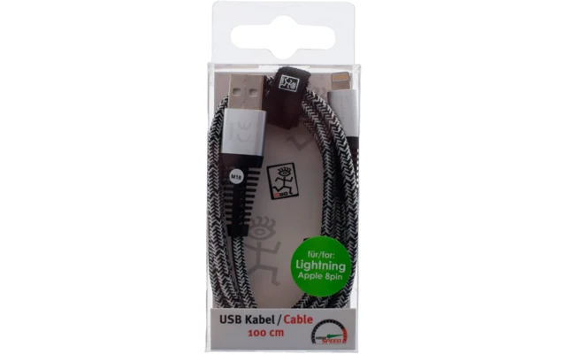 Cavo dati USB con spina metallica robusta. Adatto a tutti i dispositivi con connettore Apple a 8 pin.