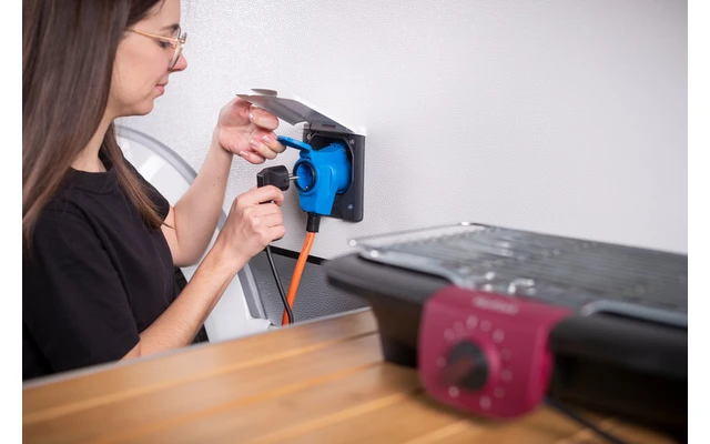 Per il campeggio e l’uso esterno permanente. Resistente agli spruzzi, IP 44.