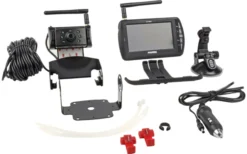 Oltre al monitor da 7″ e alla doppia telecamera, il sistema include anche il cavo LUIS 20m resistente alla salsedine, il materiale di installazione corrispondente e un manuale di istruzioni.