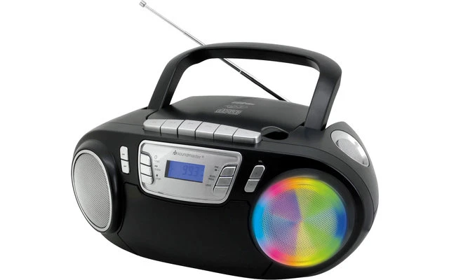 Top boombox alla moda – con microfono, registrazione a cassetta e luce per altoparlanti da discoteca del marchio Soundmaster.