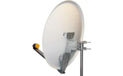 Con lo specchio satellitare dalla forma precisa, si possono ricevere immagini televisive perfette anche ai margini delle zone di illuminazione. Per risparmiare spazio, il braccio dell’LNB è semplicemente ripiegato. Non sono necessari strumenti per regolare lo specchio, poiché le viti ad alette sono utilizzate ovunque. Peso circa 4,5 kg